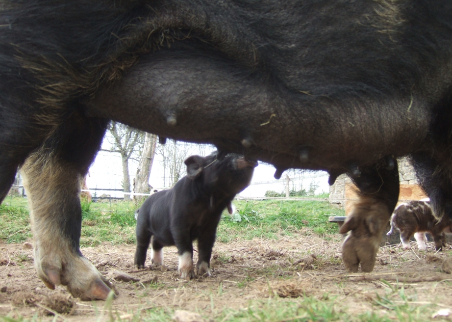 Yes we have pigs- lot of pigs, we went from two pigs to ten pigs in just a couple of hours.It all began on friday morning with Twiggy deciding she couldn't possibly eat breakfast which is rare for a pig, so it seemed like something was up. Indeed it was, by the time we'd got back from a quick trip to the market to stock up on carrots for pigs and cobs and fresh fish for us Twiggy had popped out one and was in the midst of popping out number two.